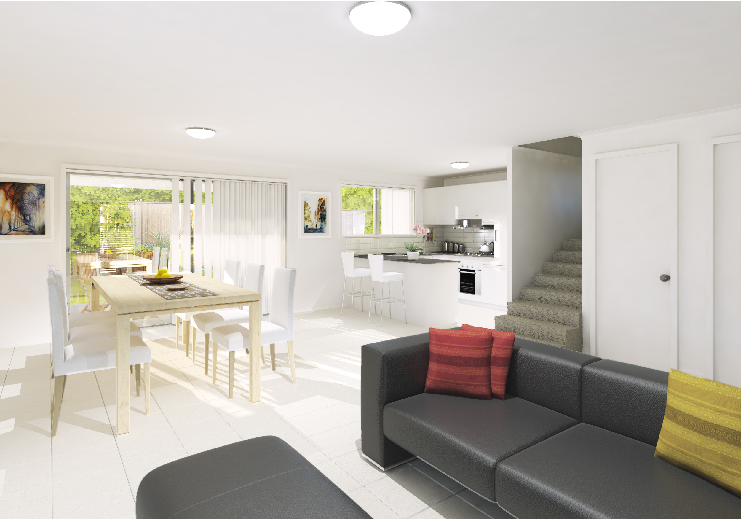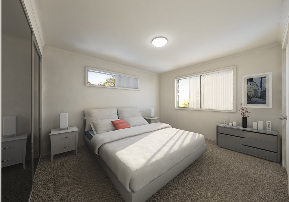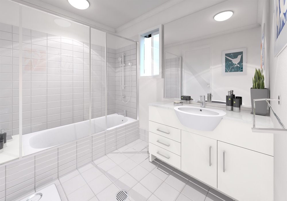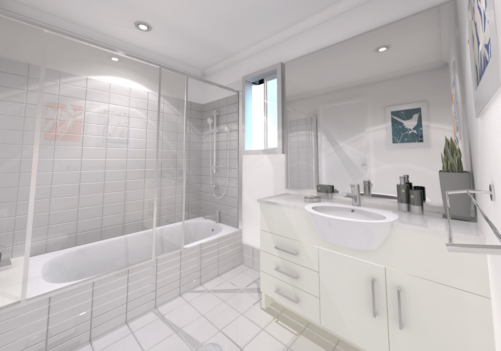 These visualisations were to represent each bathroom, living/kitchen and bedroom for 3 new dwellings.