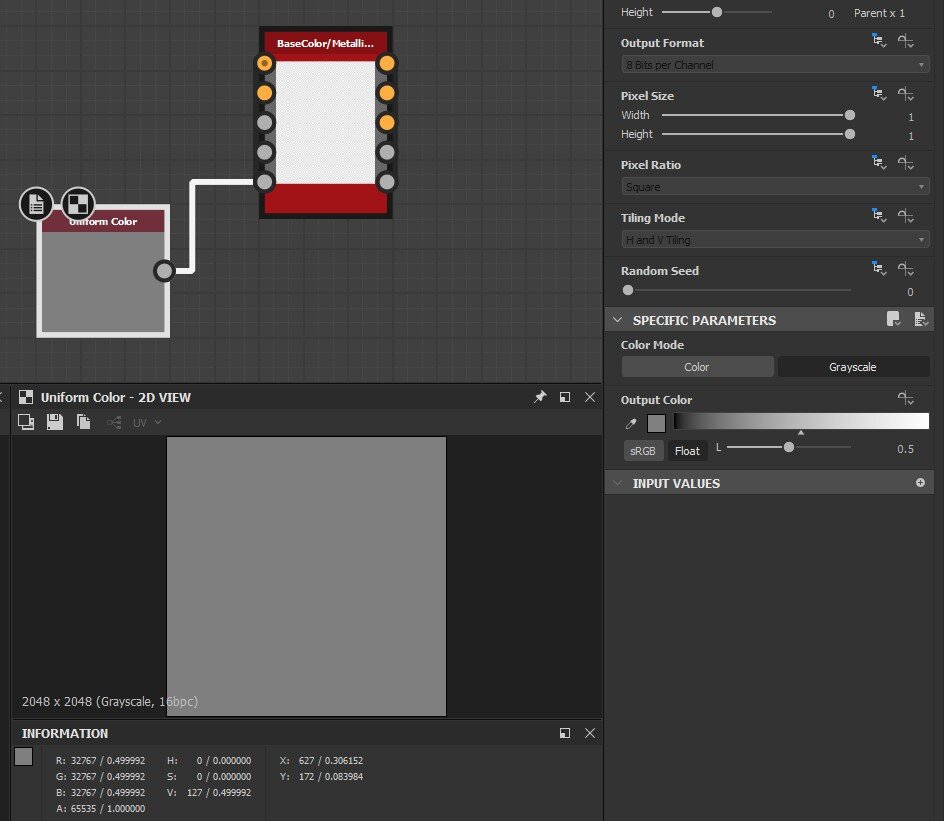You now have an easy way to change the Fresnel Value and have the SpecularLevel/IOR map update automatically within Substance Designer. This ior_value you exposed before will be available in the main menu when you double click on an empty area > Input Parameters > ior_value > Default. Set the Default to 1.5 and you will see your Greyscale Linear Value change to 0.5 and your IOR dialectric texture change to 0.666667 (in the grey area). Obviously feel free to experiment with other fresnel values.