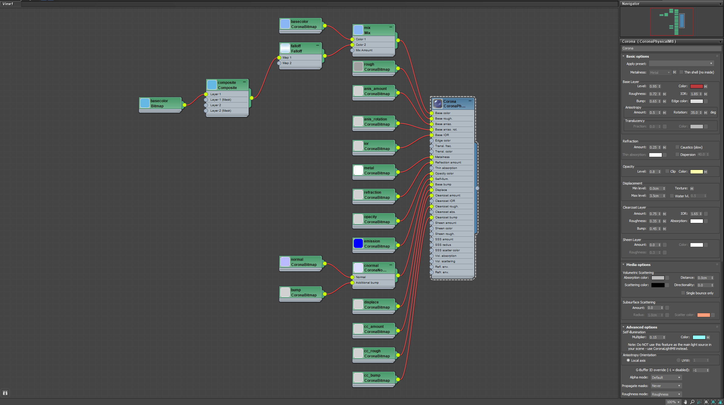 - Keeps all nodes in the hierarchy eg. Diffuse > Falloff > Basecolor.png or Composite nodes etc. Doesnt really matter how deep the hierarchy goes it just searches for the Bitmaps/CoronaBitmaps